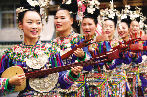 2015年6月13日是我國第十個“文化遺產(chǎn)日”,當(dāng)天,許多民族地區(qū)都開展了相關(guān)活動,展示“非遺”項目的保護(hù)成果。在貴州省黎平縣,當(dāng)?shù)囟弊迦罕妳R聚在縣城,開展演侗戲、唱侗族大歌、跳侗族蘆笙舞等展演活動,自信展示侗族“非遺”文化魅力。
