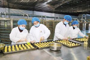在霍爾果斯馕產業園里,面點師傅正在制作用于出口俄羅斯的馕。 新華社發