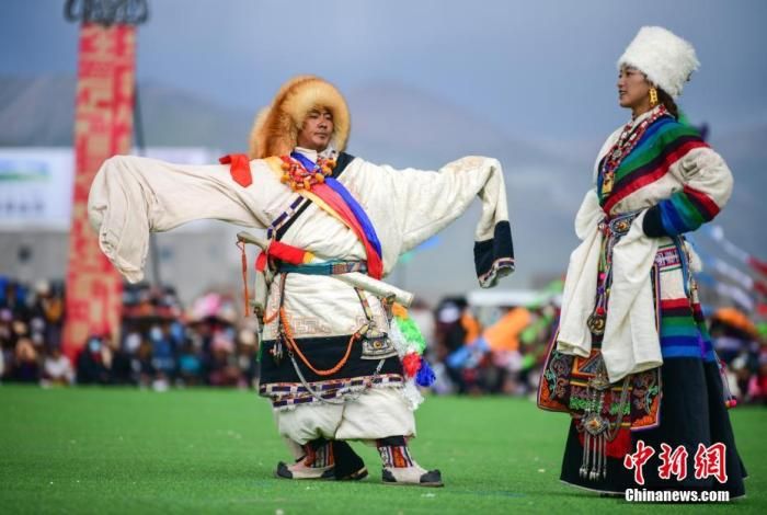 資料圖為西藏自治區拉薩市當雄縣賽馬節上的藏族傳統服飾表演。 中新社記者 貢嘎來松 攝