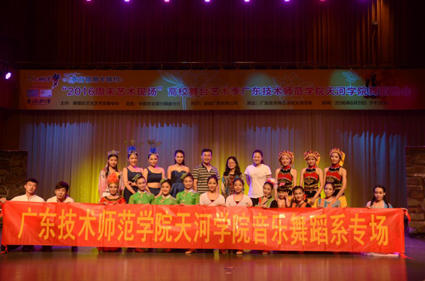 另外,廣東技術師范天河學院亦設有本科音樂與舞蹈專業。其藝術團頗為活躍,擁有四支表演隊伍,共有團員超過200人。