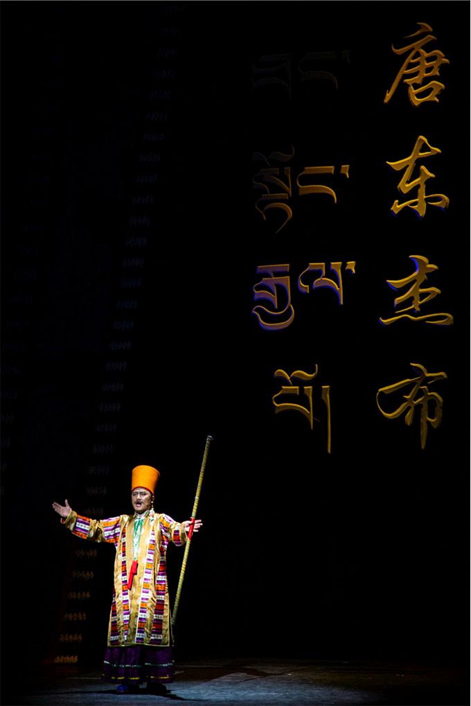 南木特藏戲已有400年的歷史,面對這樣一個彌足珍貴的“中國戲曲活化石”,主創人員對創作主題和表現形式斟酌再三,最后選定以“生命的奉獻”為創作起點,將《唐東杰布》以“老戲新唱”的形式呈現給觀眾。