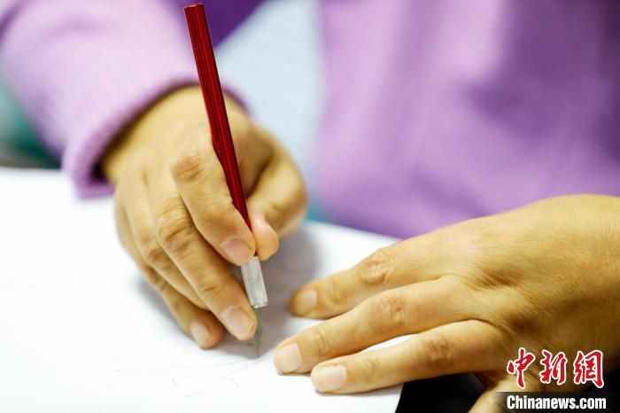 圖為河北省大廠民間刻紙藝人張翠梅正在創作冬奧主題刻紙作品。 劉亮 攝