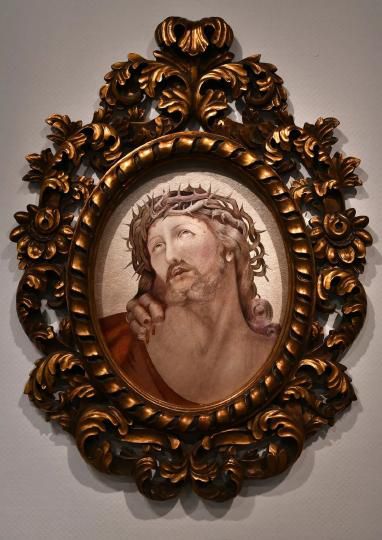本作品展現的是耶穌被釘在十字架上遭受殘酷折磨的神態。作者用亂針繡和平繡相結合的方法,用細密的排針將耶穌的苦難放大在觀者面前。整個繡面呈現出了靜默而肅穆的氛圍。