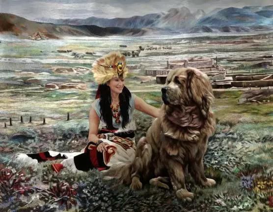 作品采用亂針繡針法和蜀繡傳統施毛針法相結合的工藝繡制,呈現出藏族少女與藏獒和諧相處的畫面,民族風情濃郁,人物塑造逼真。