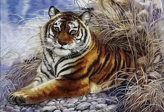 湘繡的圖案借鑒了中國畫的長處,所繡內容多為山水、人物、走獸等,尤其是湘繡的獅、虎題材,形象逼真,栩栩如生。