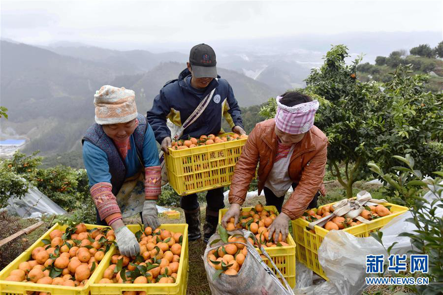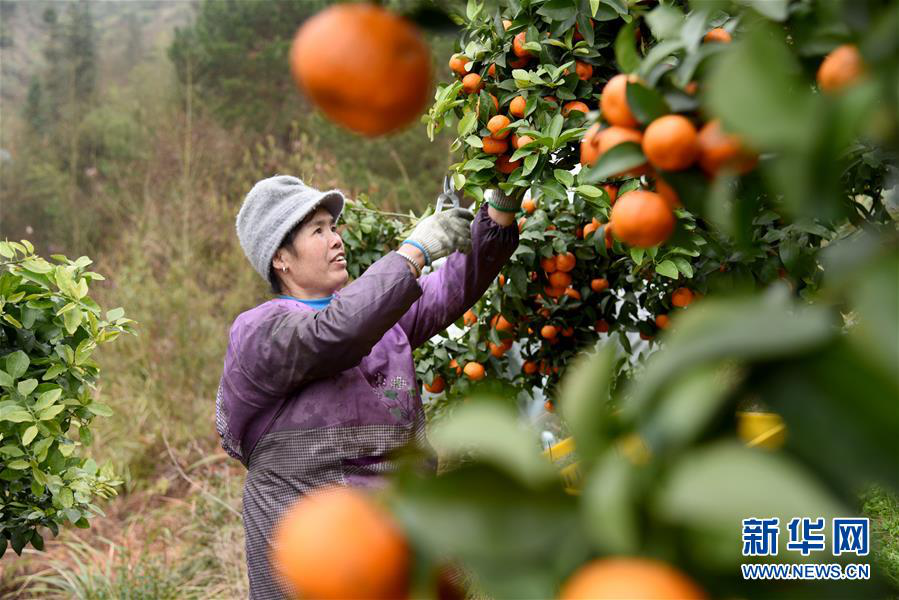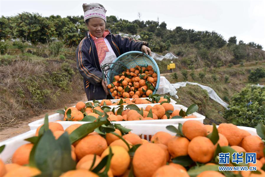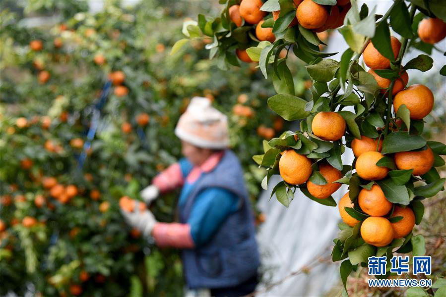 3月2日,在貴州榕江縣忠誠鎮王嶺村砂糖橘種植基地,果農在采摘砂糖橘。