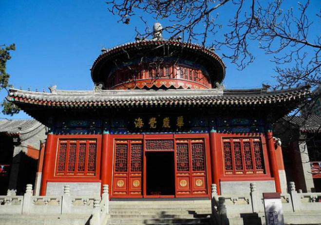 潭柘寺楞嚴壇(20世紀50年代拆除后構建封存)位于潭柘寺西路,建于明代。殿為木構建筑,上層為圓攢尖寶頂,下層為六角形,臺基為六角形石質壇臺。