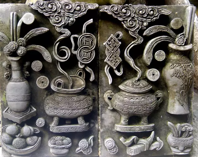 制作工藝與核心點(diǎn)是在于用金磚等級(jí)的成品青磚進(jìn)行表面深度雕刻,這是我國幾百年來傳統(tǒng)意義上真正的磚雕,其它采用合成、翻模、窯前(即捏制成形后再燒制)等其他技術(shù)做成的產(chǎn)品可能在外觀上可以效仿與復(fù)制,但隨著安裝后時(shí)間上的增加“仿品”的色澤,形變會(huì)逐漸體現(xiàn)出來甚至多數(shù)發(fā)生斷裂、脫色、變色,并且在價(jià)值意義上忽略了傳統(tǒng)磚雕精致細(xì)膩、氣韻生動(dòng)、極富書卷氣等特點(diǎn)。