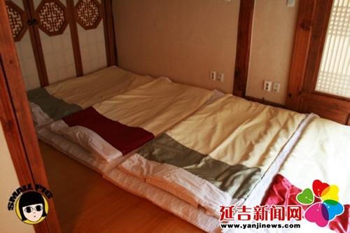 炕是朝鮮族家庭室內活動的主要場所,吃飯時女主人會將食物都擺放在低矮的小餐桌上,搬到炕上全家人席炕而坐,盤腿圍坐一起吃飯。到了晚上,人們還是會在炕上鋪上被褥睡覺。因為炕是一家人重要的活動場地,所以勤勞干凈的朝鮮族婦女,每日清晨都會以“擦炕”開啟一天的勞動模式。