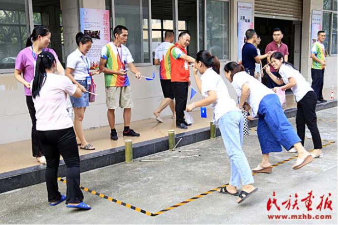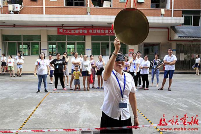 趣味運動會結合民族地區開展的傳統體育項目,以及趣味競技游戲等,展示了少數民族傳統體育特色,如盲敲銅鑼和高蹺便是利用了民族地區的一些傳統活動改編而來的,另外還有團隊協作的民族民間運動項目手毽、拔河和板鞋競速等。200余名各族群眾參加了這些帶有濃厚民族特色的運動項目。