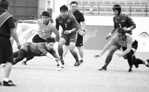 “穩(wěn)住,穩(wěn)住,看準(zhǔn)了再發(fā)力!”河北隊蹴球教練張宏磊在場邊不斷給隊員鼓勁兒。