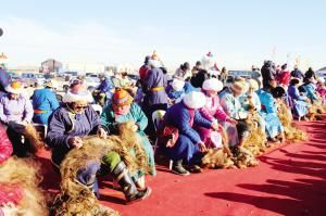 當然,后來那達慕增加了許多新項目,比如賽駱駝、提水、縫蒙古袍扣子、撿牛糞、打斷牛骨比賽、蒙古象棋比賽、沙嘎(羊拐)比賽等。在北京舉辦的那達慕里,還融入了現(xiàn)代三大球類比賽項目,為了集體參與,增加了拔河比賽、扔沙包、服飾比賽、兒童說蒙古語比賽、兒童唱歌比賽等。