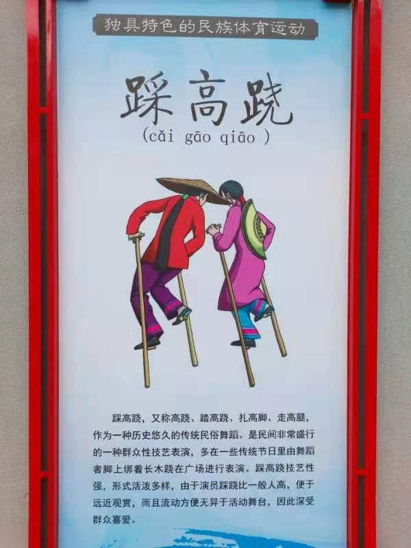 踩高蹺,又稱高蹺、踏高蹺、扎高腳、走高腿,作為一種歷史悠久的傳統民俗舞蹈。是民間非常盛行的一種群眾性技藝表演,多在一些傳統節日里由舞蹈者腳上綁著長木蹺在廣場進行表演。踩高蹺技藝性強,形式活潑多樣,由于演員踩蹺比一 般人高,便于遠近觀賞,而且流動方便無異于活動舞臺,因此深受群眾喜愛。