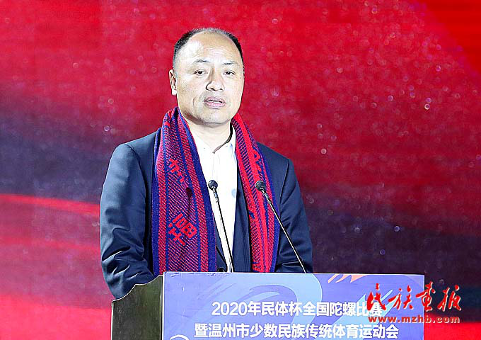 為發(fā)展民族傳統(tǒng)文化體育,促進民族交往交流交融,推進民族團結進步事業(yè),不斷鑄牢中華民族共同體意識,11月27日,2020“民體杯”全國陀螺比賽暨溫州市少數(shù)民族傳統(tǒng)體育運動會在浙江省溫州市鹿城區(qū)白鹿洲公園隆重開幕。浙江省委常委、溫州市委書記陳偉俊,國家民委監(jiān)督檢查司司長隋青,浙江省民宗委副主任鐘新章,溫州市委常委、統(tǒng)戰(zhàn)部部長施艾珠,市委常委、秘書長王軍,市人大常委會副主任張洪國,市人民政府副市長陳應許,市政協(xié)副主席諸葛啟釧等領導出席開幕式,浙江省、市、縣民族工作相關單位負責人及裁判員、教練員、運動員代表600余人參加了開幕式。