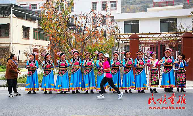 運動員們在奔跑中感受熱熱鬧鬧的羌歷年,體驗節奏明快的沙朗舞,近距離接觸古樸厚重的羌族文化。