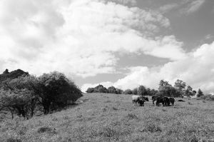 甘南的天空分外藍,白云像輕紗一樣在空中飄蕩,河水從西面湍急而下,沖刷著鵝卵石,發出嘩嘩的擊打聲,和簌簌的風聲一起,在空曠的草原上合奏出輕快的樂曲。都說高原的天氣瞬息多變,剛剛還藍天白云透著明媚的陽光,突然云量增多,將太陽完全遮擋住,一陣急風掠過,一場不速之“雨”傾盆而下,瞬間淋濕了迷戀美景的游人,躲閃不及的人們無所適從,放羊的牧民也急匆匆地收拾著晾曬的衣服,動作敏捷而熟練,看得出來他們早已習慣了這樣的天氣。