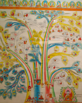 “唐卡”也叫“唐嘎”、“曼湯”,系藏語譯音。唐卡的起源,至今沒有史料給予精確的記載。據藏史記,兩千多年前在西藏修建的第一座宮殿——雍布拉宮的墻壁上就繪有壁畫,由此說明唐卡的雛形是源于壁畫。有的學者認為,最早的唐卡是繪制在獸皮上,它起源于牧業文明的雅礱文化時期。唐卡可分為兩大類,一類是用絲絹制成的唐卡叫“國唐”,另一類是用顏料繪制的唐卡叫“止唐”。常說的80幅醫學唐卡即“止唐”中的一種,全稱為彩色繪畫唐卡。彩繪唐卡是依據《四部醫典》這部巨著,在公元1730年五世達賴授意第司·桑結嘉措組織藏區著名醫學家、繪畫大師通過對尸體解剖、藥材實物考察,以科學態度整理繪制的,又被稱為《四部醫典系列掛圖》,掛圖的繪制使《四部醫典》這部博大精深的醫著史書簡明易懂。西藏自治區藏藥廠的陳列室藏這珍貴的歷史資料——醫學唐卡,幾百年過去了,唐卡色彩依然明亮艷麗、工筆細膩、活靈活現,栩栩如生。繪制唐卡的原料全部是用金、銀、珍珠、瑪瑙、珊瑚、松石、孔雀石、朱砂等珍貴的礦物寶石和藏紅花、大黃等天然植物做顏料制作而成,使唐卡有著非常高的純度和穩定性。第司·桑結嘉措完成的唐卡有79幅,加附由第司·桑結嘉措親筆題詩加蓋印章的一幅歷代名醫圖,組成“80幅唐卡”。80幅唐卡,從藥王及藥王城(藏醫學基礎理論的建立),人體生理病理、診斷、治療的樹喻學說,病因、癥狀和分類,藏藥的藥物理論和分類,防病、診斷和治療、養生方法, 生動形象地反映了藏醫藥學發展的進程和偉大實踐。藏醫彩繪唐卡除了有極高的教學價值外,還有很高的民族學、歷史學、佛學及繪畫學價值,是研究藏文化的珍貴資料,其卷幅之多、內容之廣博、構思之巧妙、畫工之精湛堪稱世界醫學掛圖之最,是藏醫學對世界醫學的珍貴貢獻。詳細名目如下: