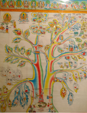 在上述80幅唐卡中:屬于藏醫學基礎理論方面,樹喻學說見于唐卡(2)—(4)。唐卡(18)按照人體“龍”、“赤巴”、“培根”的“三大因素”學,提出了它們是維持生命的物質基礎,人體平衡失調均可致病。