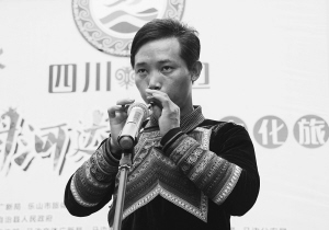 現年41歲的阿西日哈,是四川馬邊彝族自治縣民建鎮燈桿堡村的村民。這位多才多藝的彝族漢子不僅會吹奏木葉、草葉,而且精通月琴、馬布,還會吹奏葫蘆絲和笛子,可以稱得上是一位全能樂器手。令人驚訝的是,這些樂器幾乎都是阿西日哈自學的。