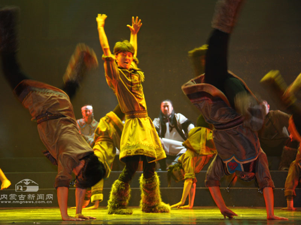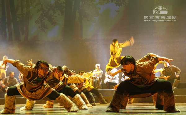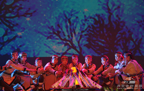 演員們的表演也頗為出色。參演的60多名演員全部來自鄂溫克自治旗烏蘭牧騎,這是一支以年輕人為主的隊伍,他們在舞臺上的精彩表現給這部歷史題材的歌舞劇增添了青春的活力。比如“搶樞”一場,不僅形象地再現了鄂溫克民間一項傳統娛樂活動——“搶樞”,突顯了年輕人活潑好動的特點,而且傳達出鄂溫克年輕人在遷徙途中不畏艱險、苦中作樂的頑強精神。尤其是在本場最后,小伙子們一段奔放狂野的群舞盡顯陽剛之美,展現了鄂溫克民族的豪爽與激情。