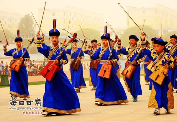 肅北蒙古族自治縣烏蘭牧騎于1974年成立,屬大西部特殊的專業文藝團體之一。主要以搜集整理、改編和創作富含民族特色的歌舞節目為己任,以發展性傳承的方式,推陳出新肅北特有的民族文化。從1980年以來,地方政府和專家學者還組織了工作隊走訪藝人,搜集了許多民歌、英雄史詩等,出版刊印了《肅北蒙古族贊祝詞輯錄》、《肅北蒙古民歌》(蒙文)等書,這些舉措使雪山蒙古人的傳統歌舞和民俗以文本的形式得以保存。1983年9月,肅北烏蘭牧騎自編自導、獨具地方特色的《響鈴舞》和《馬頭琴演奏》,參加全國烏蘭牧騎文藝匯演,受到教育部嘉獎。這也在無形中增強了肅北蒙古人的民族自豪感和民族凝聚力。