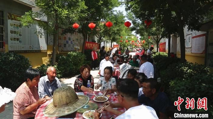 “孝善羊湯宴”將伏羊節推向高潮,當地村莊免費請“孝善人家”代表等“喝伏羊”。 付宏 攝