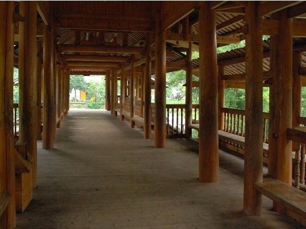 瑤族風(fēng)雨橋,又被稱之為“涼橋”或“風(fēng)水橋”。除木橋外,大多是在石拱橋上加蓋橋廊、橋亭和在橋頭的橋臺(tái)上建閣樓,穿斗式木構(gòu)架,二層檐或三層檐,有的四層檐,通高在9米~10米間。風(fēng)雨橋不僅是路人避雨之處,也是瑤族男女青年談情說(shuō)愛(ài)的約會(huì)場(chǎng)所。廣西瑤族風(fēng)雨橋主要集中在富川瑤族自治縣和恭城瑤族自治縣。富川縣保存至今的古代瑤族風(fēng)雨橋有18座,其中著名的有迥瀾橋(建于明萬(wàn)歷年間),青龍橋(與前者同時(shí)期修建),以及福壽橋、高橋、鳳溪新橋、皇侯泉橋、東轅橋、鸕鶿塘瀾通橋、龍歸橋、興隆橋等。