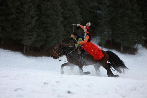 簡介:在傳統的竟技比賽場上,最激動人心的還是“姑娘追”它往往是全場比賽的壓軸戲。“姑娘追” 據說是由上古“追姑娘”的風習演變而來,至今既是哈薩克人最喜愛的娛樂項目[詳細]