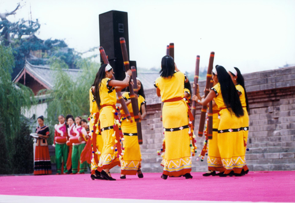 打擊樂:有象腳鼓、竹筒鼓、銅鼓、鑼、芒、镲、木鼓。舊時(shí),木鼓不是樂器,而是人與神之間求應(yīng)的媒介,是佤族最崇拜的神物。現(xiàn)在,木鼓已被作為文娛活動(dòng)的打擊樂器。西盟縣木鼓舞獨(dú)具特色,國(guó)內(nèi)外聞名。
