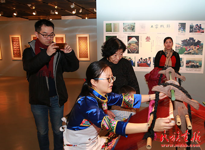 觀眾對(duì)土家織錦的制作過程表現(xiàn)出極大的興趣