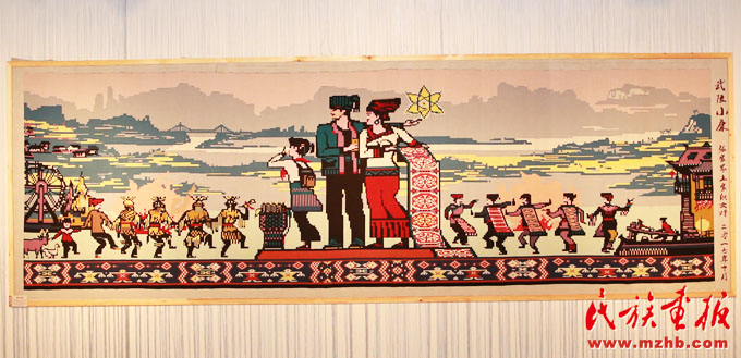 中國(guó)民族博物館從全國(guó)土家族聚居區(qū)征集的300多幅藏品中精心挑選出156幅土家織錦精品,120余張土家風(fēng)情照片和21分鐘土家織錦傳承人視頻,展覽分為“五彩斑衣——土家織錦歷史回眸”“天工巧織——土家織錦工藝流程”“薪火相傳——土家織錦傳承人錄”和“錦繡武陵-——土家織錦品類縱覽”四大部分,生動(dòng)全面地展示了國(guó)家級(jí)非物質(zhì)文化遺產(chǎn)項(xiàng)目——土家織錦的藝術(shù)特色與文化價(jià)值。本次展覽的代表性文物有1950年中南軍政委員會(huì)田心桃代表贈(zèng)送給毛主席的禮物土家織錦《滿天星》,湖南省級(jí)傳承人葉菊秀主持創(chuàng)作的巨幅長(zhǎng)卷《民族大團(tuán)結(jié)》(寬60厘米、長(zhǎng)1210厘米)。特別值得一提的展品是長(zhǎng)450厘米、寬150厘米的土家織錦《武陵小康》,織錦配色達(dá)30余種,調(diào)制有132712個(gè)色塊。這是張家界市170萬各族兒女為迎接黨的十九大勝利召開,表現(xiàn)土家織女們對(duì)精準(zhǔn)扶貧成果的欣喜,而由近百位土家織女歷時(shí)五個(gè)多月制作而成的巨幅織錦,也是第一次在國(guó)家級(jí)專題博物館公開展出。
