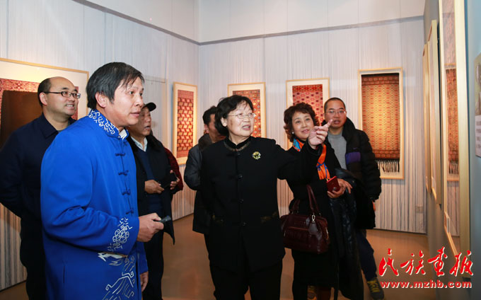 座談會(huì)上,中國(guó)民族博物館副館長(zhǎng)張志文介紹說:土家族是一個(gè)古老的民族,有著4000多年的文明發(fā)展史。土家族在全國(guó)有2個(gè)自治州、8個(gè)自治縣,人口達(dá)835萬。土家織錦從秦漢時(shí)期萌芽,歷經(jīng)賨布、溪布、斑布、土錦等幾個(gè)發(fā)展階段,在明、清時(shí)期開始定型,至今已有2000余年的燦爛歷史。中紀(jì)委駐財(cái)政部紀(jì)檢組原組長(zhǎng)、全國(guó)婦女手工編織協(xié)會(huì)副會(huì)長(zhǎng)賀邦靖說:土家織錦是土家婦女智慧的結(jié)晶,是武陵山區(qū)文化精準(zhǔn)扶貧的重點(diǎn)項(xiàng)目之一。從這個(gè)展覽上我們不僅可以看到土家織錦的燦爛與美麗,還可以看到國(guó)家實(shí)施文化精準(zhǔn)扶貧的實(shí)效。