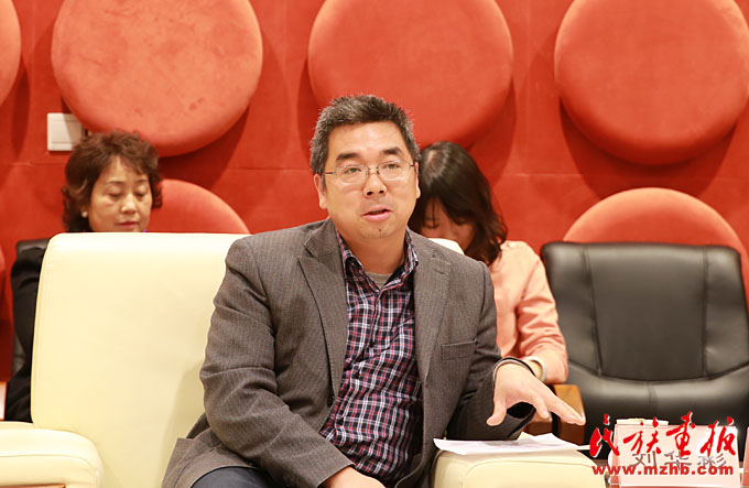 中國(guó)民族博物館副館長(zhǎng)張志文介紹土家族基本情況和展覽內(nèi)容