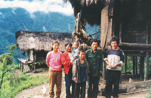取走竹箭背上弩弓向巴坡返回,一座竹樓里傳出一群孩子的聲音。進了屋,大人不在,主人的孩子見到我趕忙攏火燒水,屋里還有鄰家的幾個孩子。我對孩子們說,走哇,到外面射箭去。