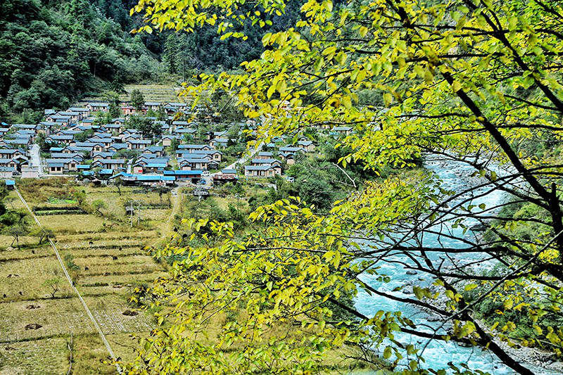 熊當村遠眺。熊當村是獨龍江鄉最北的村子,與西藏接壤,如今已完成了安居重建