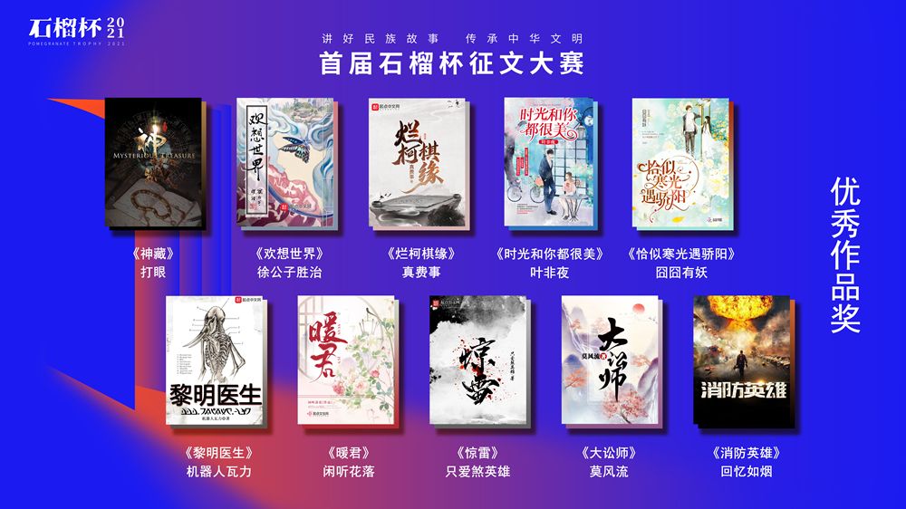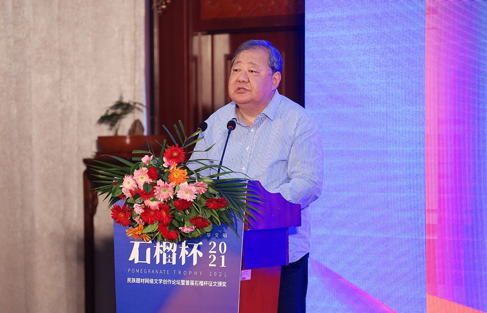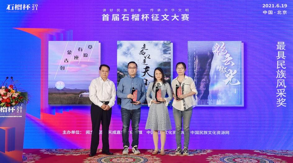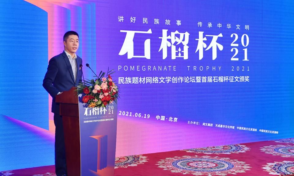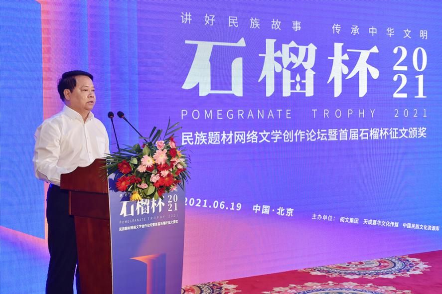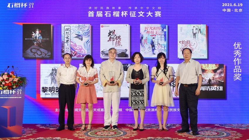 6月19日,民族題材網絡文學創作論壇暨首屆石榴杯征文大賽頒獎典禮在京舉行。作為國家民委主辦的“中華民族全家福”系列活動之一,首屆石榴杯征文大賽得到了國家民委文化宣傳司和中國少數民族文化藝術促進會的指導與支持,由閱文集團聯合天成嘉華文化傳媒、中國民族文化資源庫、中國民族文化資源網共同舉辦。本屆大賽以“講好民族故事 ,傳承中華文明”為主題,涌現出眾多弘揚民族精神、表達文化自信、傳播正能量的作品。經過專家推薦及嚴格評審,《草原有座蒙古包》、《走西口之天山行》、《彩云微光》等三部作品獲“最具民族風采獎”,《神藏》、《歡想世界》、《爛柯棋緣》、《時光和你都很美》、《恰似寒光遇驕陽》、《黎明醫生》、《暖君》、《驚雷》、《大訟師》、《消防英雄》等十部作品獲“優秀作品獎”。所有獲獎作品都將收錄入中國民族文化資源庫。中國作家協會副主席、書記處書記吉狄馬加表示,本屆石榴杯大賽是在黨和國家長期以來堅持的對民族文化、少數民族作家創作和民族題材創作的大力扶持下,依托網絡文學平臺,將文學作品與影視作品改編、游戲、動漫產品制作結合起來,探索的一條發展民族文化的新路,具有開創意義。