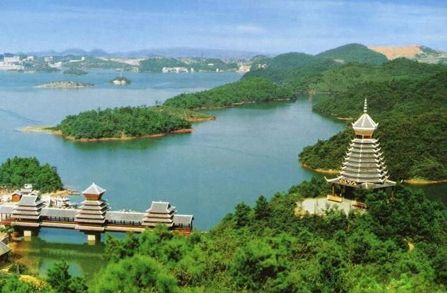 貴州國家級風景名勝區之一的紅楓湖風景名勝區是連貴州本地人都十分愛去游覽的地方,它不僅僅因它的湖泊面積大更因它的湖上星羅棋步的小島而吸引著本地的外地的游客。它的水域總面積為57.2平方公里,蓄水量可達6億立方米,為貴州高原人造湖之最,據專家考證出來的數據顯示,紅楓湖比北京的十三陵水庫大12倍,相當于6個杭州西湖。