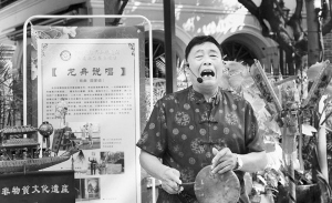 后來,在一個民俗文化節上,吳家耀手執龍舟杖表演龍舟說唱的情景,引起了媒體的關注。他還帶著這一根龍舟杖,把龍舟說唱唱到了北京天壇,連不懂粵語的老北京也聽得津津有味。