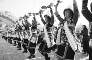 2014年2月6日,云南西雙版納傣族自治州景洪市基諾山鄉人頭攢動,歡聲笑語。來自四面八方的賓客云集在大鼓舞廣場,與基諾族同胞一起歡度“特懋克”節。