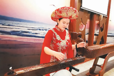 在京族文化傳承與保護(hù)中心,記者遇到63歲的獨弦琴藝術(shù)家蘇春發(fā)和32歲的講解員趙霞。“我5歲跟叔叔學(xué)獨弦琴,11歲拜姑丈為師,1991年以來,我親手教出來的學(xué)生已有300多人。”今年5月,蘇春發(fā)獲得國家文旅部頒發(fā)的“京族獨弦琴藝術(shù)代表性傳承人”證書。京族姑娘趙霞曾參加“京族哈妹組合”,進(jìn)入第十四屆CCTV青歌賽原生態(tài)組全國決賽,并榮獲團(tuán)體優(yōu)秀獎。她左手搖柱,右手撥弦,當(dāng)場為我們演奏一曲悠揚(yáng)、委婉的京族民歌《過橋風(fēng)吹》,把京族少男少女的情動心境演繹得非常唯美。