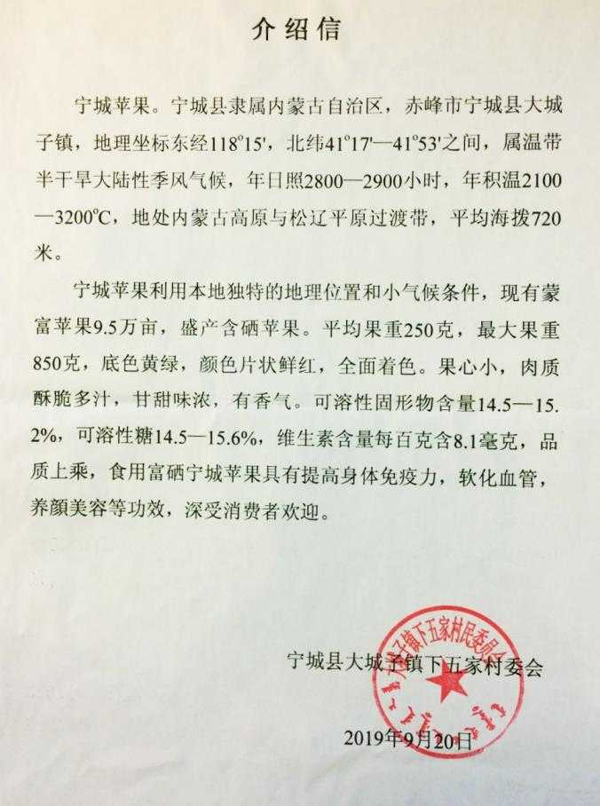 寧城蘋果是寧城縣巴林果樹試驗(yàn)場與沈陽農(nóng)業(yè)大學(xué)合作,于1978年以哈爾濱東光蘋果為母本和日本富士蘋果為父本雜交而來,經(jīng)過十幾年時間選育而成的蘋果。1997年內(nèi)蒙古自治區(qū)科學(xué)委員會組織國內(nèi)著名果樹專家進(jìn)行鑒定,定名為蒙富,寓意內(nèi)蒙古的富士。2015年7月“寧城蘋果”通過國家工商總局商標(biāo)局注冊,取得“寧城蘋果”地理標(biāo)志證明商標(biāo),推動了本地蘋果產(chǎn)業(yè)健康快速發(fā)展。