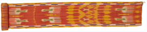 艾德萊斯綢收集于新疆庫(kù)爾勒地區(qū),大面積的紅色之中,點(diǎn)綴著象征維吾爾族生存環(huán)境的黃色,以及伊斯蘭教崇尚的綠色和象征著天空的藍(lán)色。木梳紋、石榴紋、龕座紋等紋樣呈條狀規(guī)則排列,多種色彩拼合出強(qiáng)烈的視覺(jué)效果,洋溢著跳蕩激昂的韻律和熱情似火的西域風(fēng)情。