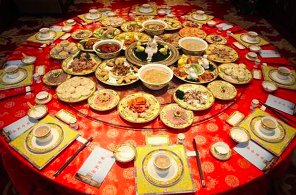 清真宴席全羊席是繼滿漢全席之后的宮廷大宴席之一,是清朝宮廷招待穆斯林客人的最高檔次宴席。全羊席是用整個羊的各個不同部位,烹制出各種不同品名、不同口味的菜肴。也就是說,從頭到尾,每一處都能做出一個菜。例如羊耳朵,可分上、中、下三段,三處可做出三樣不同的菜肴:羊耳尖可做“迎風扇”,羊耳中段可做“雙風翠”,羊耳根可做“龍門角”等等,品種五花八門,名稱各有千秋。而且從頭到尾,在所有的菜名中不露一個“羊”字,全以美麗、生動、形象的別名代之。全羊席的餐室很注重伊斯蘭特色,桌布要用藍色,還要用白布縫上“清真”二字。另外,清宮中的很多清真菜肴,現(xiàn)在仍為清真飯店保留,例如:桂花羊肉、蔥爆羊肉、芝麻里脊、炸牛排、鍋燒雞、鹽爆散丹等。還有一大批宮廷清真小吃在民間流傳,如涼糕、撒糕、切糕、甑兒糕、芙蓉糕、蜂糕等。