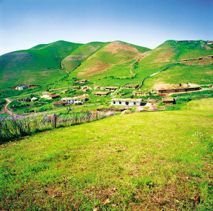新疆維吾爾自治區昌吉回族自治州奇臺縣大泉鄉黑溝村村落遠眺