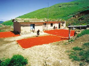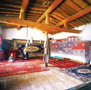 土房的室內除有的搭火炕外,其它的裝飾和木房的一樣。到了采收紅花的季節,鮮紅欲滴的紅花曬滿了院子,形成獨特的風景。不論哪個房間,都可作為臥室,也用于待客,廚房和儲藏室單建,有的還單建馕坑。