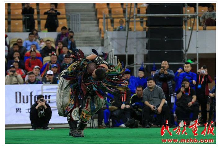 2017年11月18日,“鄂爾多斯鄂爾奇”第四屆國際蒙古搏克金腰帶爭霸賽在內蒙古自治區鄂爾多斯市舉行。圖為搏克選手入場