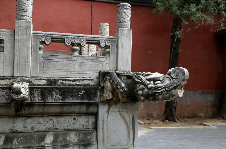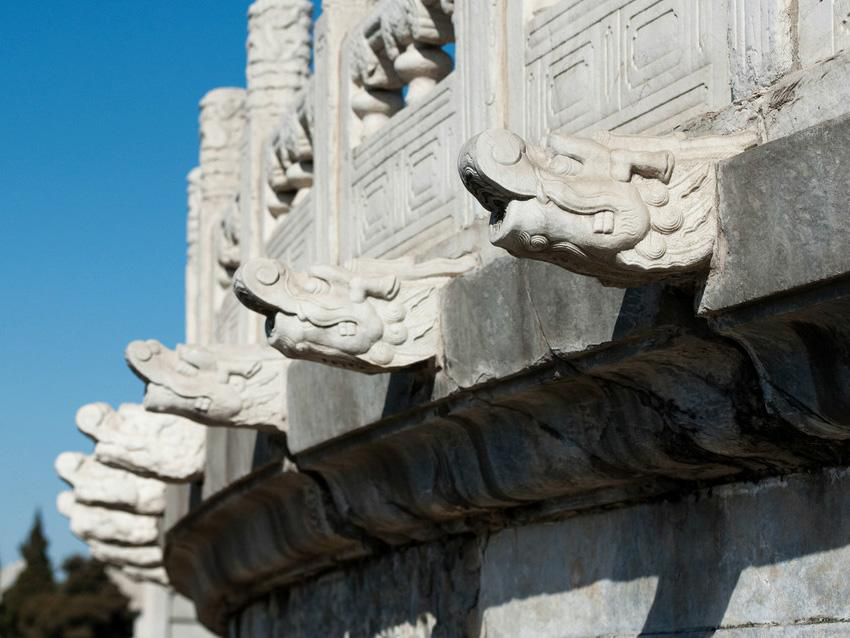 螭首是古代建筑石作制度中的主角之一,有平衡臺基望柱的重力和排水的功能,同時也是建筑上的裝飾構件,是標志著封建禮制建筑等級的象征,是實用與裝飾的完美結合的建筑裝飾小品。節奏和韻律是中國古建筑的重要特點。