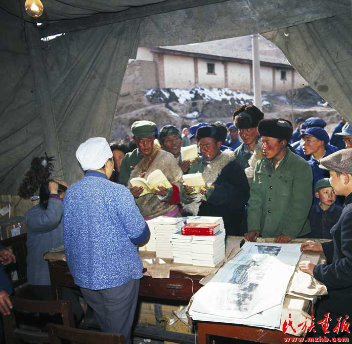 1978年5月,《光明日報》發(fā)表的特約評論員文章《實踐是檢驗真理的唯一標準》掀起了席卷中國的真理標準大討論。1978年12月18日至22日,黨的十一屆三中全會在北京舉行。全會作出了把黨和國家的工作重點轉(zhuǎn)移到經(jīng)濟建設(shè)上來、實行改革開放的歷史性決策,實現(xiàn)了新中國成立以來黨的歷史上具有深遠意義的偉大轉(zhuǎn)折。同年11月,青海省委宣傳部召開大會,為在“文革”中被打成“大毒草”的藏族史詩《格薩爾》徹底平反。圖為藏族群眾喜購《格薩爾王傳》(中國民族圖片庫資料)