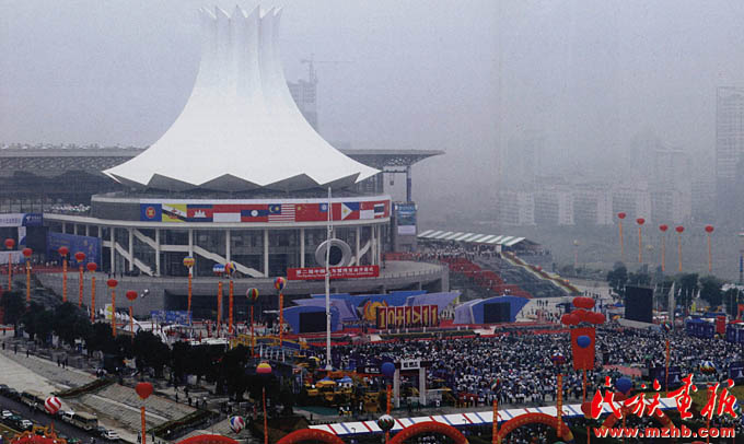 2004年,中國—東盟博覽會開始舉辦。15年來,中國—東盟博覽會承載促進雙向交流合作的重要使命和催生多贏局面的美好愿景,推動中國—東盟經(jīng)貿(mào)合作邁進新時代。圖為2005年第二屆中國—東盟博覽會開幕式?!睹褡瀹媹蟆?005年第12期