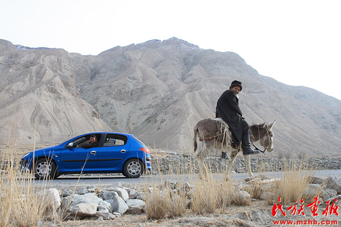 隨著一條條道路越過高山、穿過戈壁、連接綠洲、直抵大漠深處的村莊,汽車和摩托車成了民族地區(qū)各族群眾的主要交通工具,各族農(nóng)牧民的出行條件得到根本改善。2007年,新疆維吾爾自治區(qū)開小轎車的年輕人與騎著毛驢的長者在路上邂逅。(中國民族圖片庫資料)